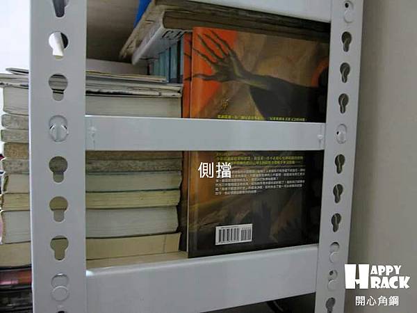 ◆角鋼專用「書擋」直接扣在角鋼上,耐用又可隨時移動: